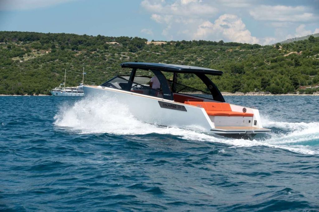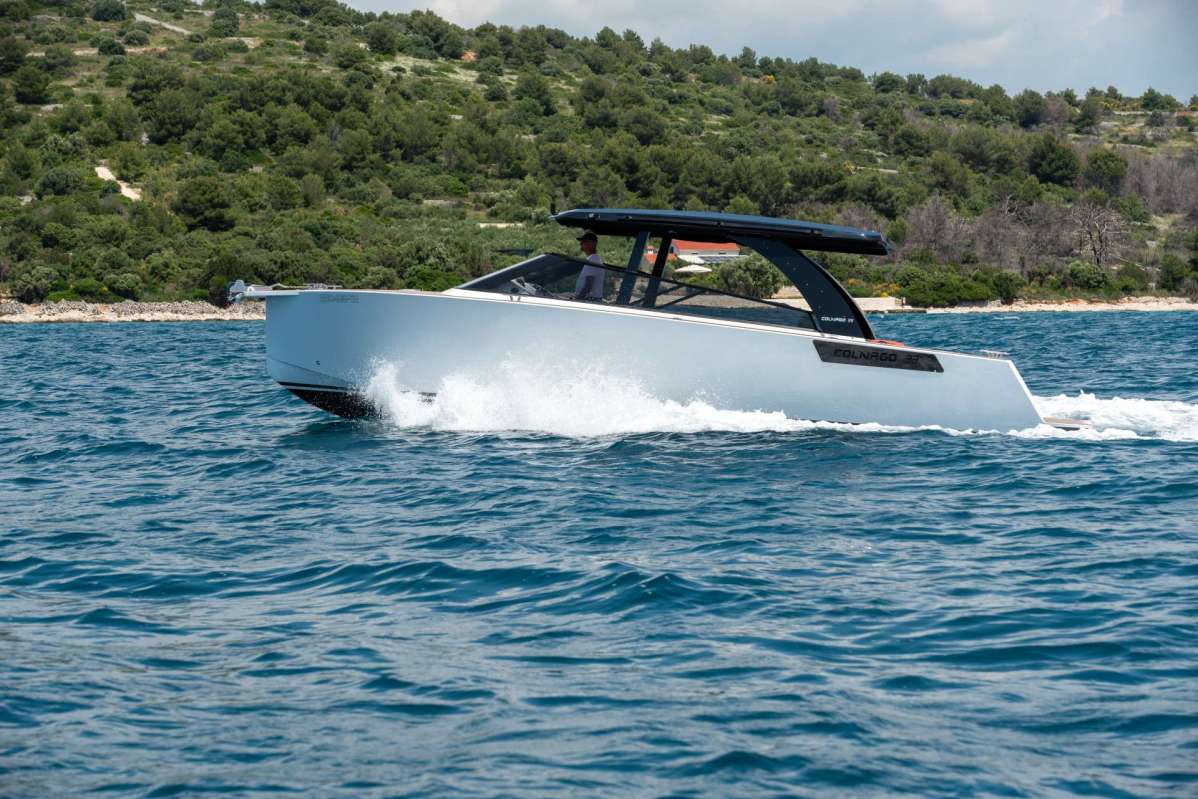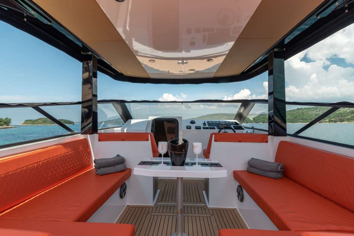 Anchor, GPS + FISHFINDER, Radio, USB VHF radio station, Shower, Cockpit table, Electrical winch with anchor and chain, Led lights in cockpit, Full safety equipment on board, Complete Mooring and anchor equipment on board, Fire extinguisher, Water sports equipment (on request), Hard top, Led lights in cabin, Conection 220V to shore, Bowthruster, 12V socket, Refrigerator Coolbox
