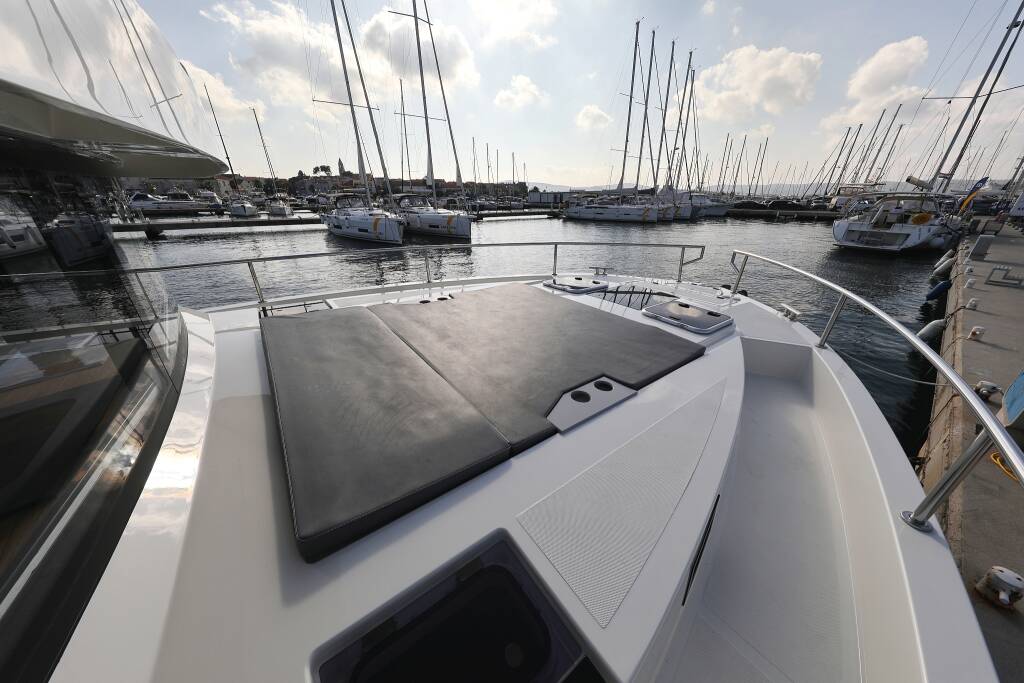 Cockpit cushions, Bathing platform, Bilge pump – Mechanic, Bimini top, Boat hook, Cockpit table, Cockpit/stern, outside shower, Dinghy, Electric anchor windlass, Fenders, Gangway, Main anchor, Mooring ropes, Spare anchor (Reserve, Auxiliary anchor), Swimming ladder, Water hose, Outdoor speakers, Radio, Wi-Fi Internet, Gas bottles, Gas cookers, Kitchen utensils (Galley equipment, cutlery), Refrigerator, Convertible table, Electric toilet, Autopilot, Binoculars, Bow thruster, Compass, Divider, nautic chart, GPS chart plotter, GPS on Fly, Hand bearing compass, Navigation (Nautical) charts and nautical guide, Navigation set, Navigation/position Lights, Radar reflector, Black Water Tank, Distress flare box, Fire extinguisher, First aid kit, Flashlight, Fog horn, Horseshoe lifebuoy, Life belts (Safety harness), Life jackets, Liferaft, Repair kit, VHF radio, 220V socket, Air Conditioning, Battery charger, Bilge pump – Electric, Heating, Pump, Service batteries, Shore connection 220 V, Solar panels, USB sockets.